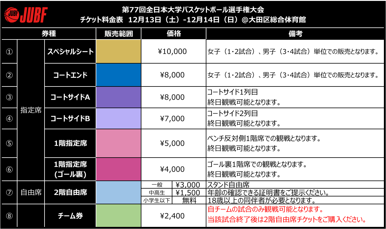 第77回全日本大学バスケットボール選手権大会におけるチーム券での観戦に関しまして一部変更しましたことをお知らせいたします。
